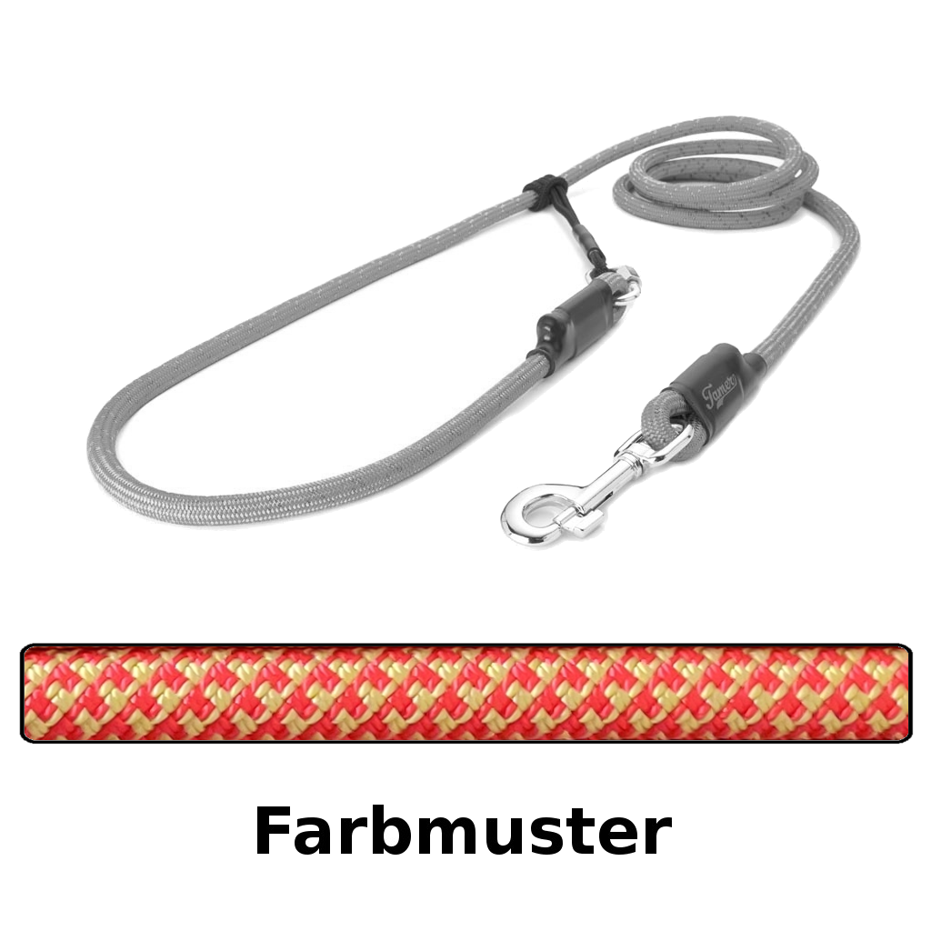 Die EASYLONG Hundeleine in Größe L (Ø ca. 11 mm) ist die richtige Wahl für kräftige und stark ziehende Hunde. Gefertigt aus originalen, statischen Kletterseilen aus Polyamid bietet sie nicht nur höchste Belastbarkeit, sondern auch ein angenehmes Griffgefühl – selbst wenn der Hund stark zieht. Empfohlen ab ca. 15 kg – doch letztlich entscheidet der persönliche Geschmack: Wer es leichter mag, greift zur M, wer mehr Kontrolle wünscht, ist mit der L goldrichtig.