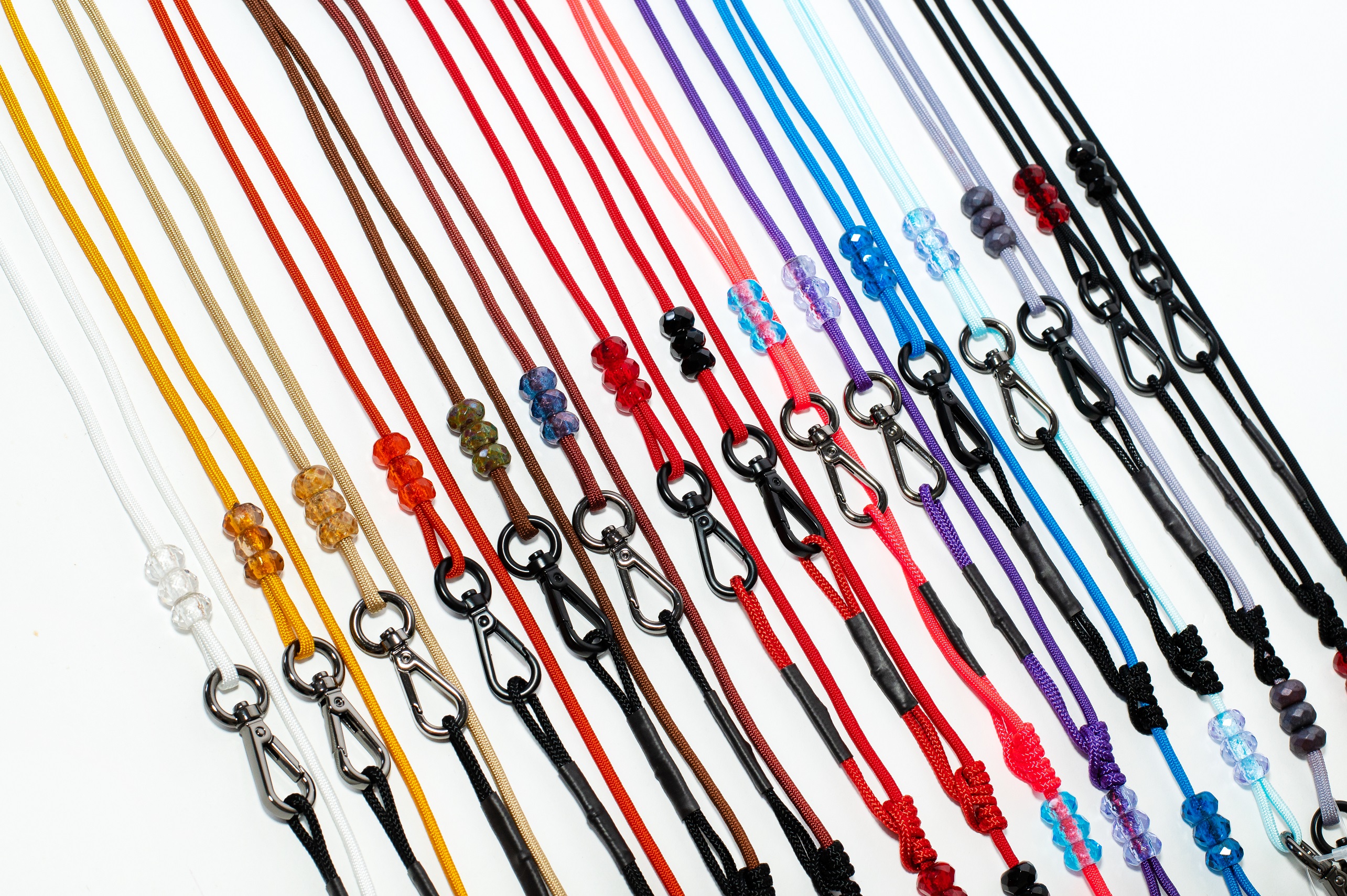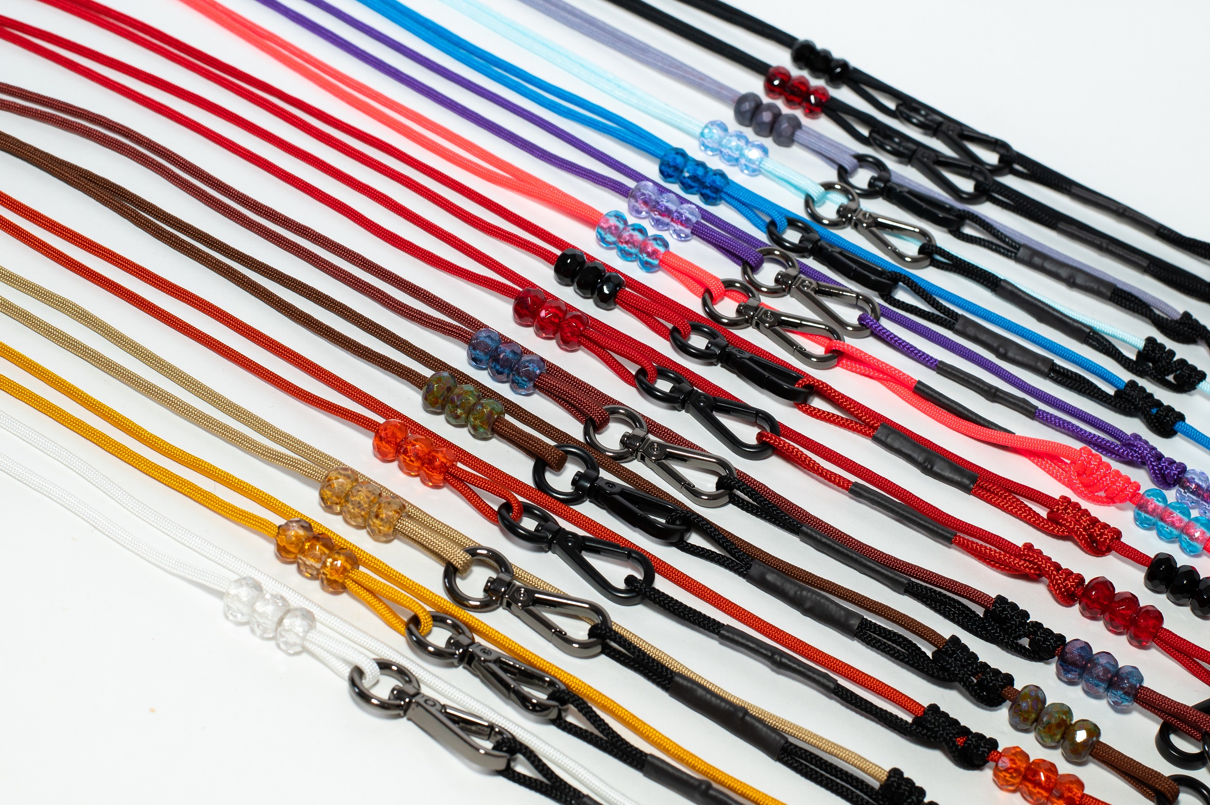 Diese FASHION Variante kommt mit edlen Glasperlen anstatt der klassischen Gummierung und hat stylische "Kipp-" Karabiner.