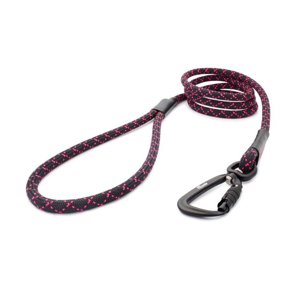 klassische Hundeleine TWIST - M - 145cm - schwarz mit pinken Stichen