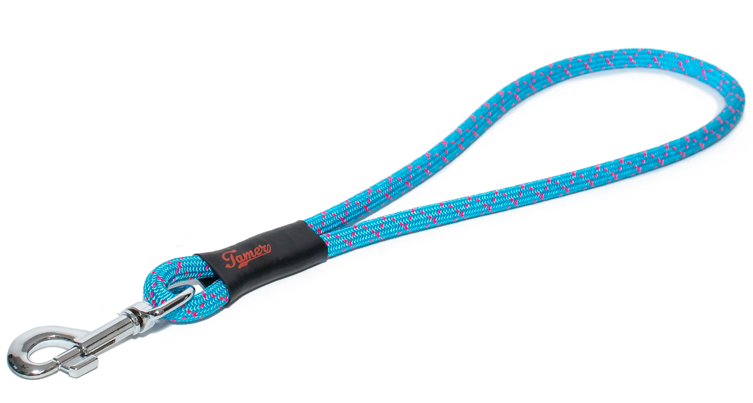 Kurzführer / Handschlaufe - L - hellblau mit pinken Stichen
