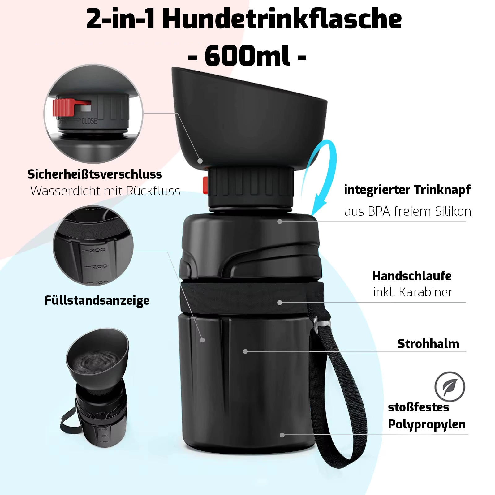 2-in-1 Hundetrinkflasche mit faltbarem Trinknapf